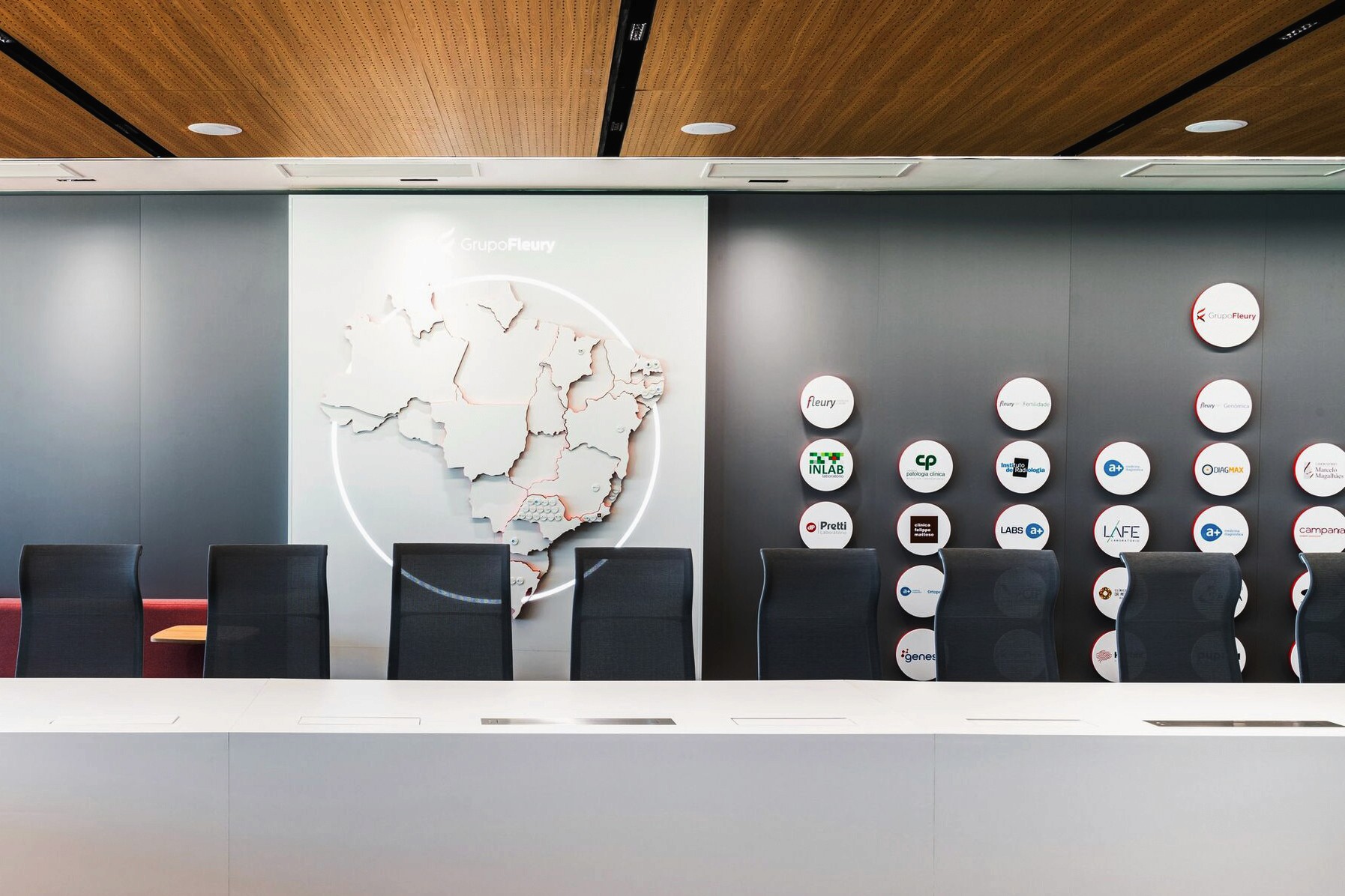Brand experience, wayfinding, and signage design for the headquarters of Grupo Fleury in São Paulo, one of the largest and most renowned medical laboratory networks in Brazil.