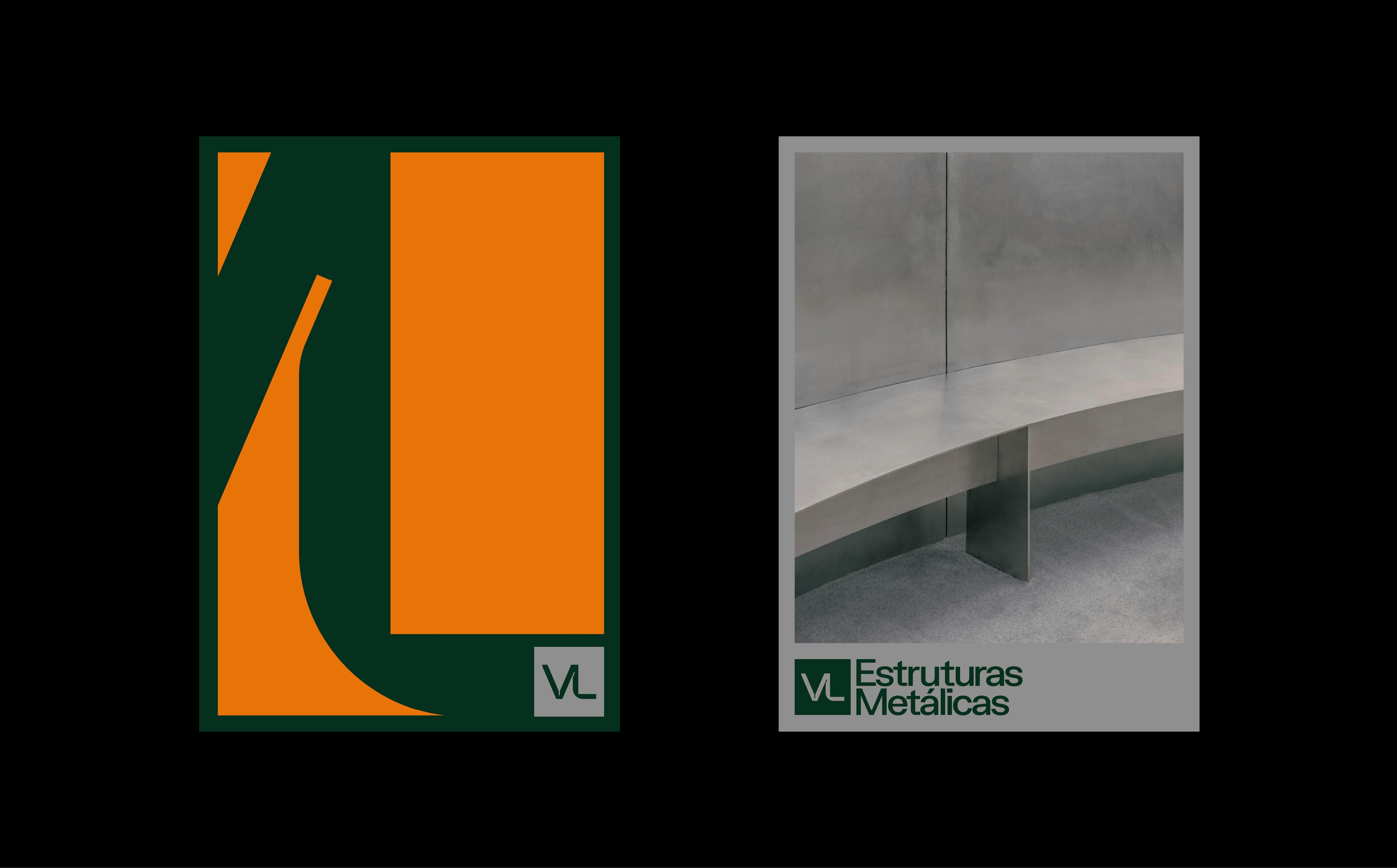 Brand identity design for VL Estruturas Metálicas, a Brazilian company specialized in the design and construction of metal structures.